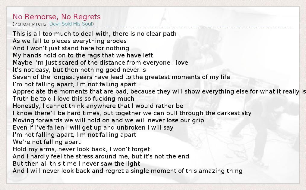 No Remorse, No Regrets