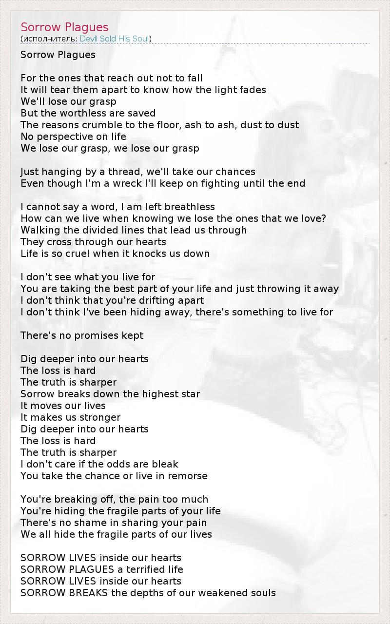 А как ты думаешь, о чем песня "Sorrow Plagues" ?
