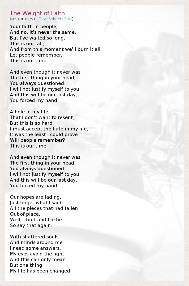 А как ты думаешь, о чем песня "The Weight of Faith" ?
