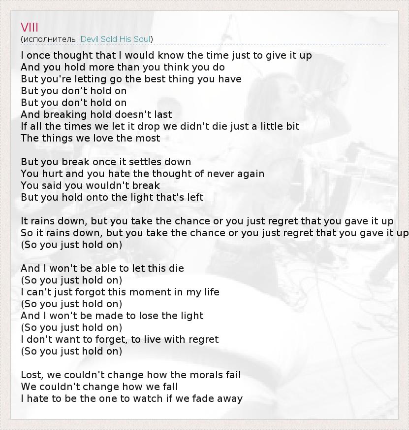 Это интересно:Devil Sold His Soul — группа из города Лондон, Англия. Знаменитая крайне атмосферными композициями и непревзойденным умением сочетать агрессию и лиричность, злобу и красоту, в целом их стиль можно охарактеризовать как post-metal. Образовались в 2004 году после распада своего первого проекта — Mahumodo.Состав:Paul Green — вокалJonny Renshaw — гитараRichard Chapple — гитараJozef Norocky — басPaul Kitney — электроника... продолжение