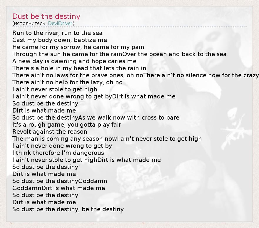 А как ты думаешь, о чем песня "Dust be the destiny" ?