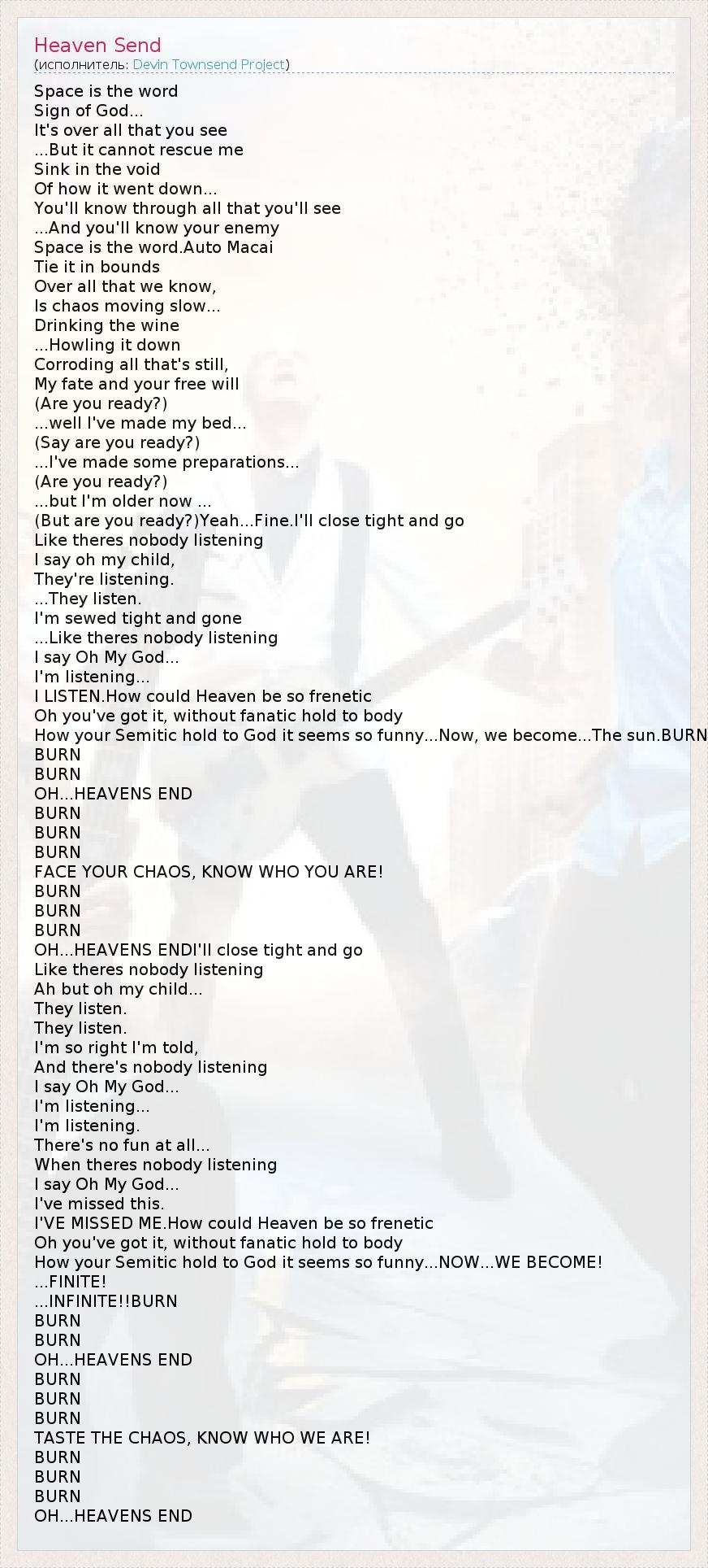А как ты думаешь, о чем песня "Heaven Send" ?