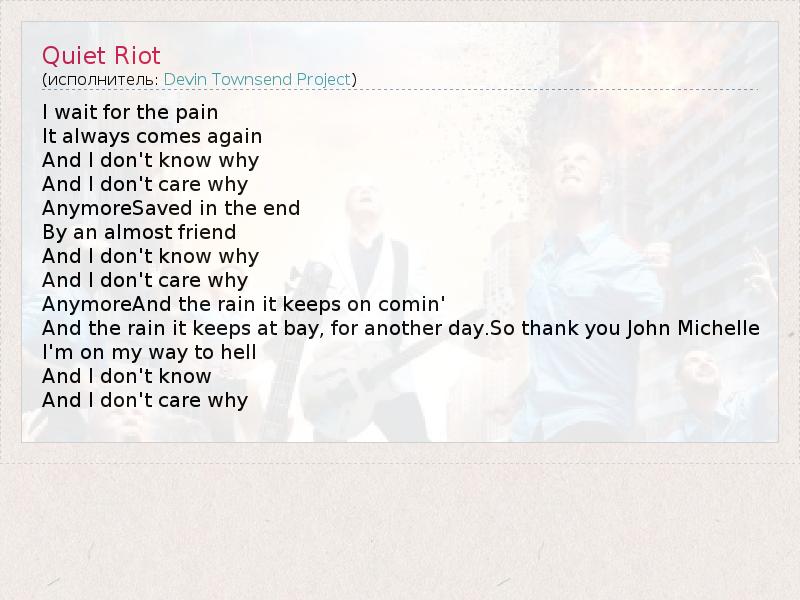 А как ты думаешь, о чем песня "Quiet Riot" ?