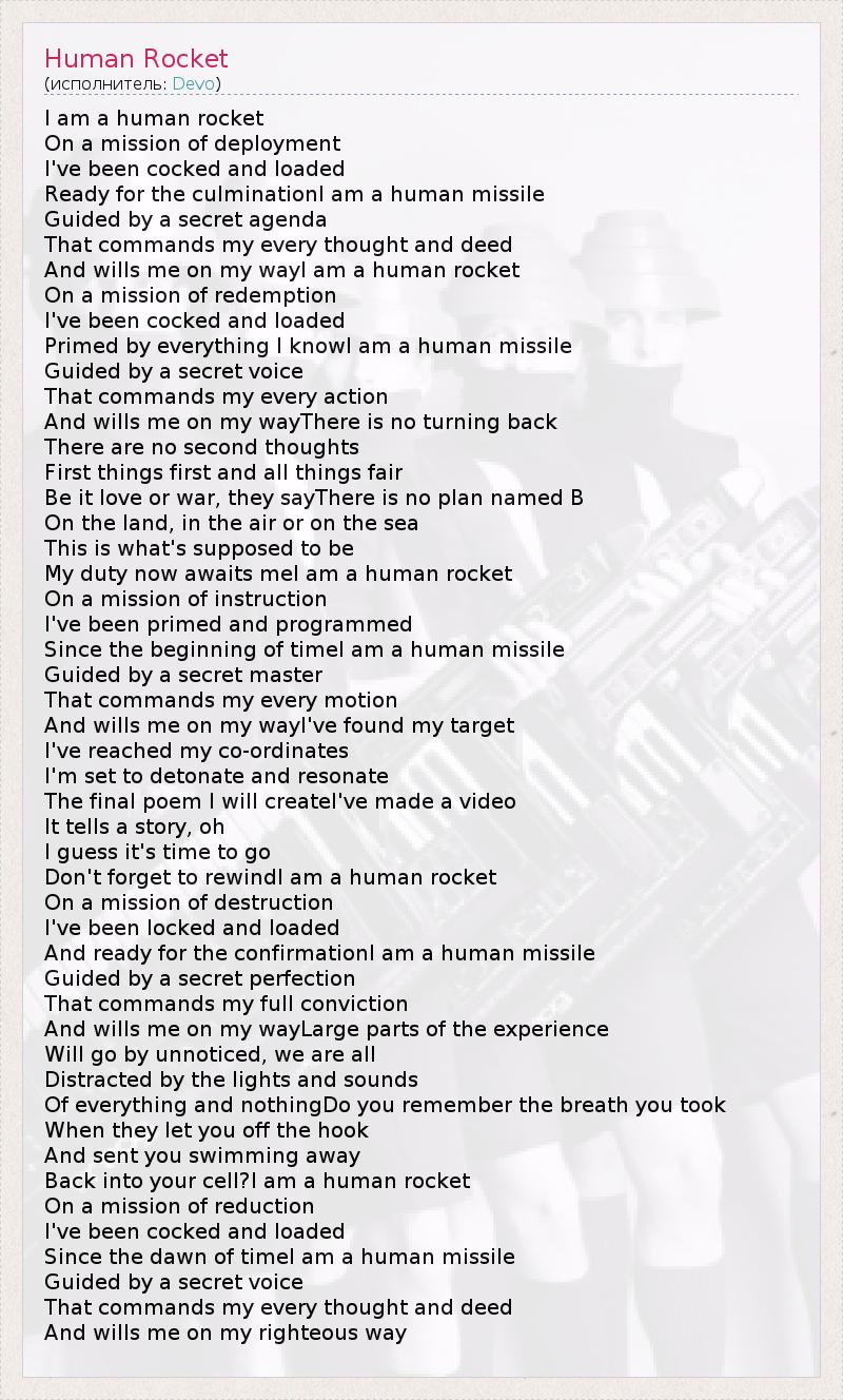 А как ты думаешь, о чем песня "Human Rocket" ?