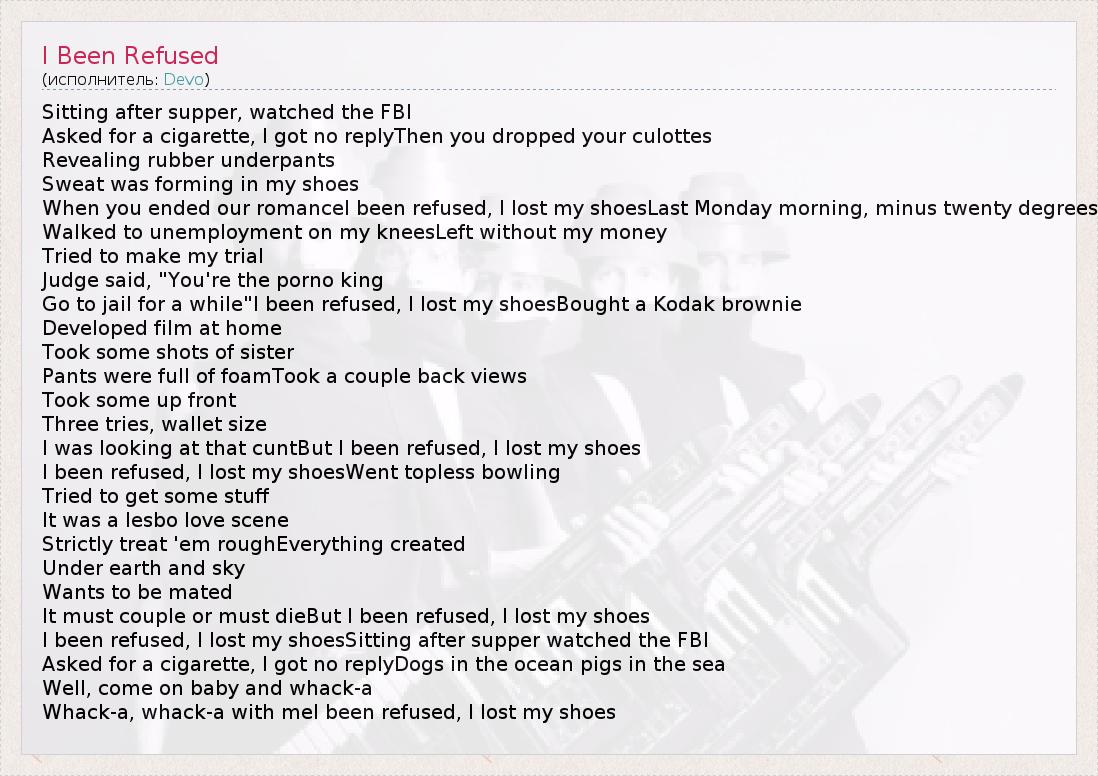 А как ты думаешь, о чем песня "I Been Refused" ?