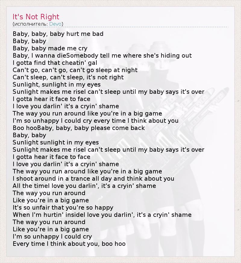 А как ты думаешь, о чем песня "It's Not Right" ?