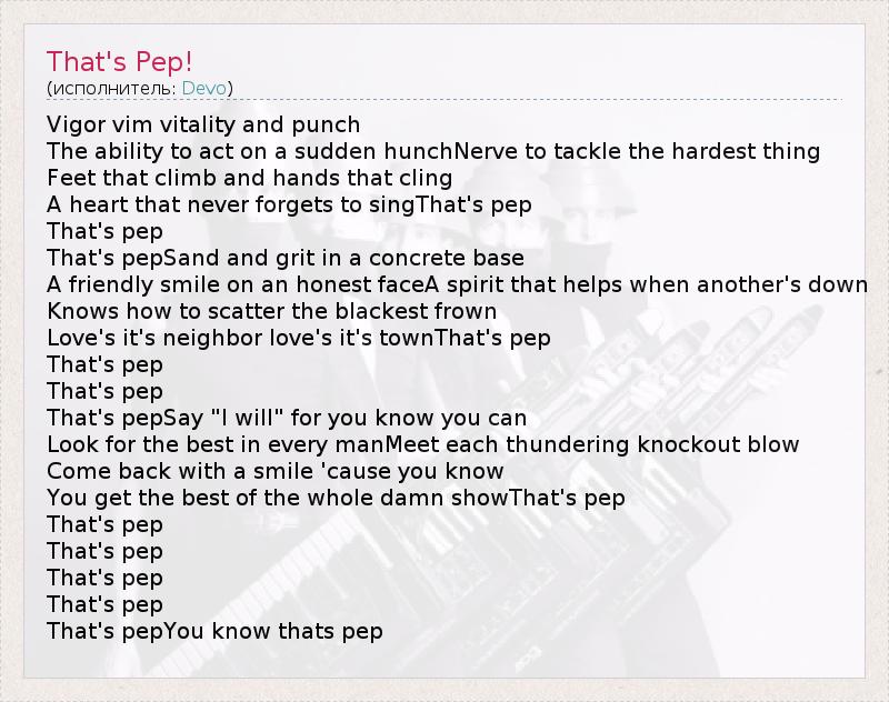 А как ты думаешь, о чем песня "That's Pep!" ?