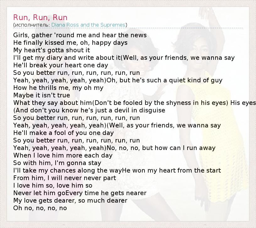 А как ты думаешь, о чем песня "Run, Run, Run" ?