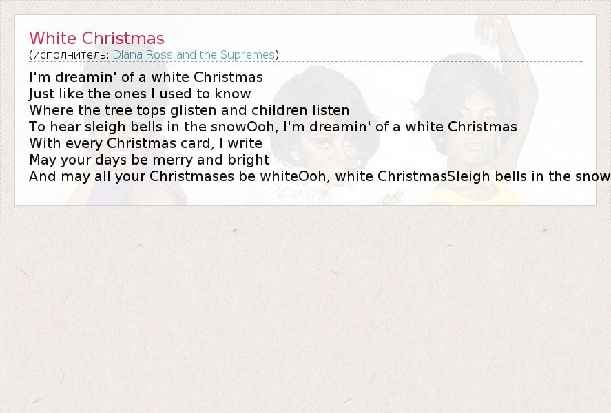 To hear sleigh bells in the snowOoh, I'm dreamin' of a white Christmas