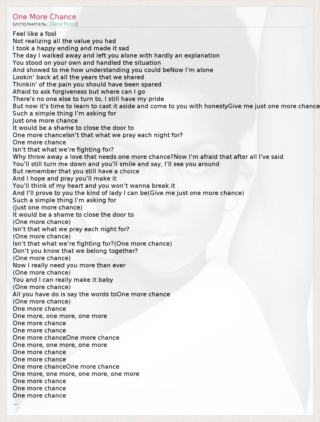 Why throw away a love that needs one more chance?Now I'm afraid that after all I've said
