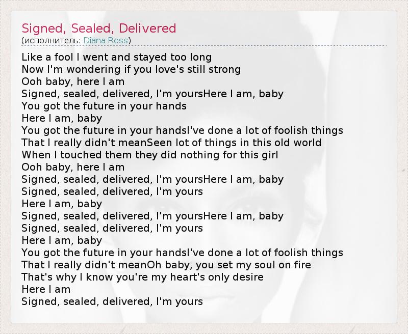 А как ты думаешь, о чем песня "Signed, Sealed, Delivered" ?
