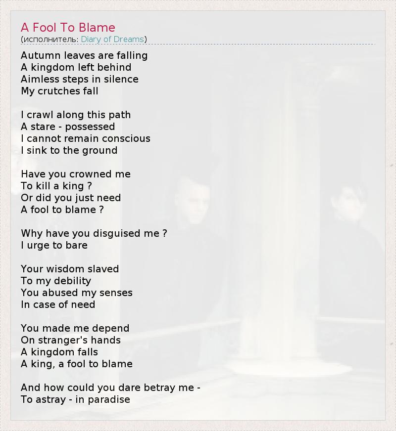 А как ты думаешь, о чем песня "A Fool To Blame" ?