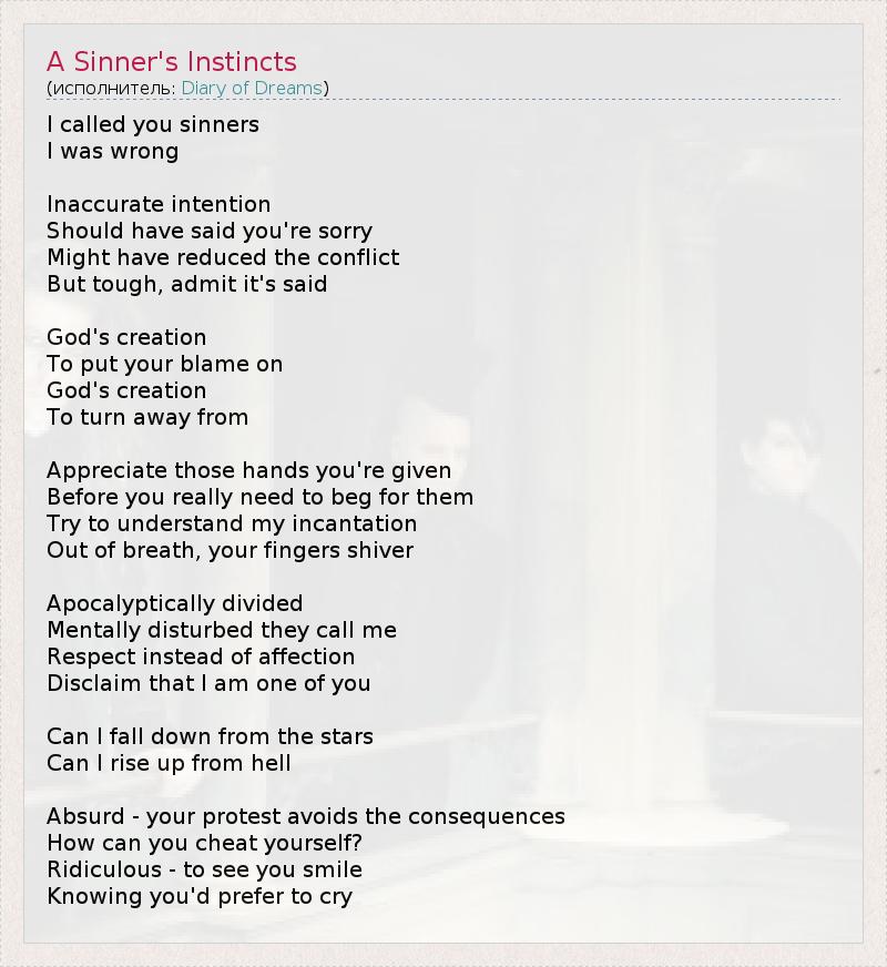 А как ты думаешь, о чем песня "A Sinner's Instincts" ?