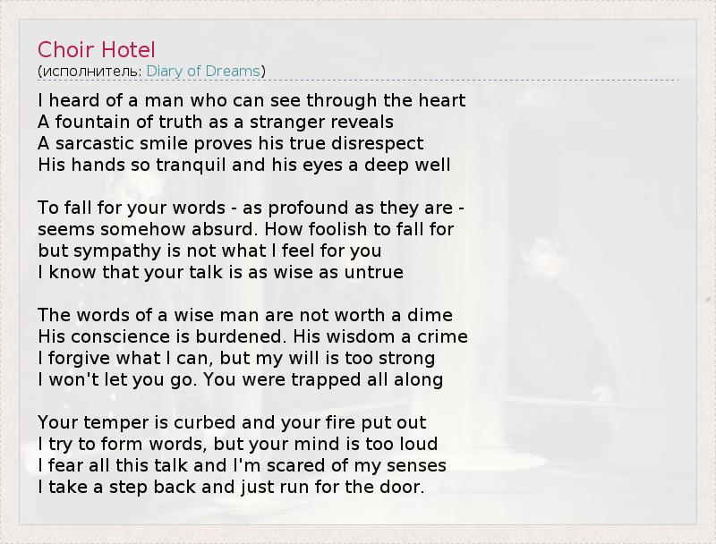 А как ты думаешь, о чем песня "Choir Hotel" ?