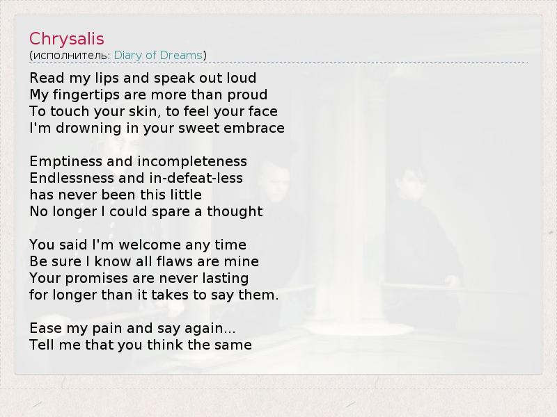 А как ты думаешь, о чем песня "Chrysalis" ?