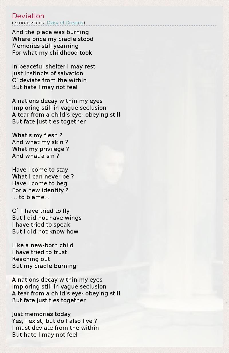 Это интересно:Немецкая группа Diary Of Dreams, основной креативной силой которой является личность владельца Accession Records Адриана Хейтса (Adrian Hates), по праву считается одним из самых необычных и талантливых коллективов на немецкой "тёмной" сцене.История Diary of Dreams берет свое начало в конце восьмидесятых, когда Адриан Хейтс только начал разрабатывать... продолжение