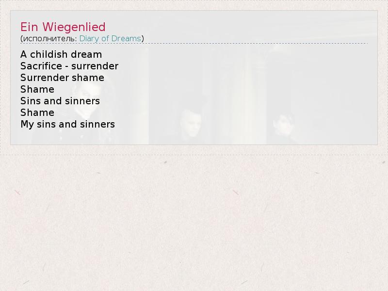 A childish dream Sacrifice - surrender Surrender shame Shame Sins and sinners Shame My sins and sinners