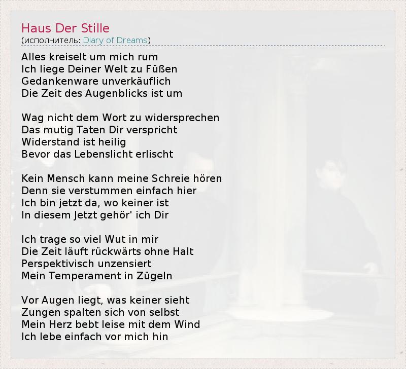 А как ты думаешь, о чем песня "Haus Der Stille" ?