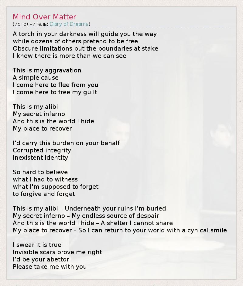 А как ты думаешь, о чем песня "Mind Over Matter" ?