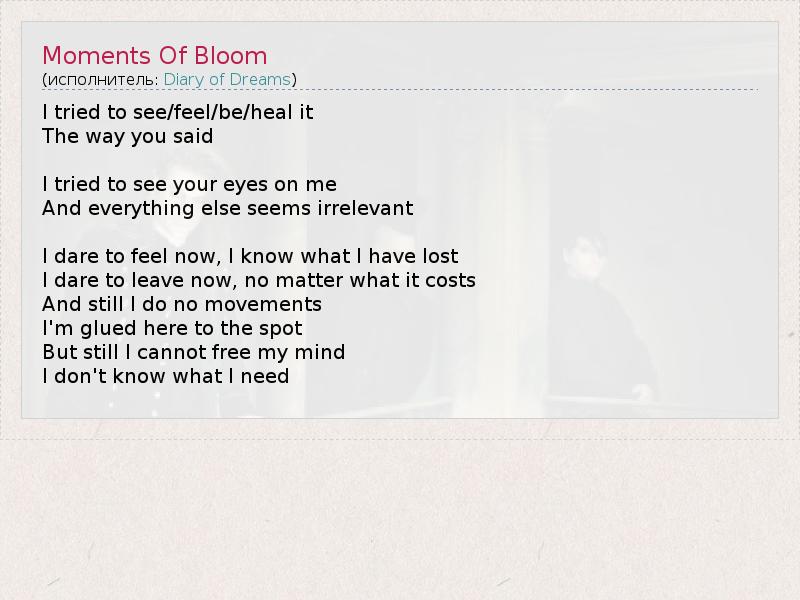 А как ты думаешь, о чем песня "Moments Of Bloom" ?