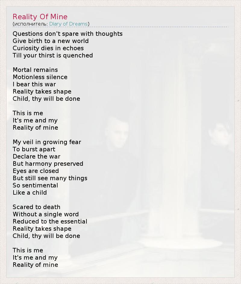 А как ты думаешь, о чем песня "Reality Of Mine" ?