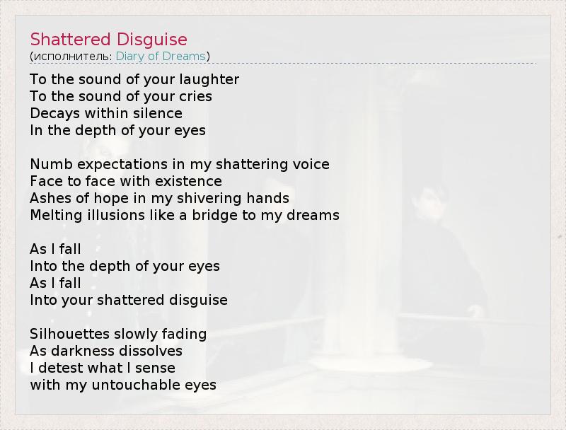 А как ты думаешь, о чем песня "Shattered Disguise" ?