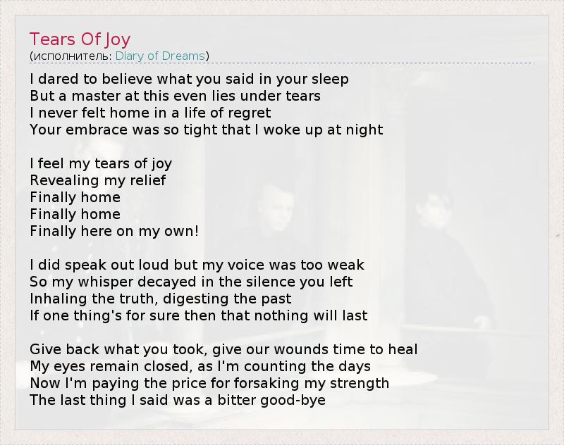 А как ты думаешь, о чем песня "Tears Of Joy" ?