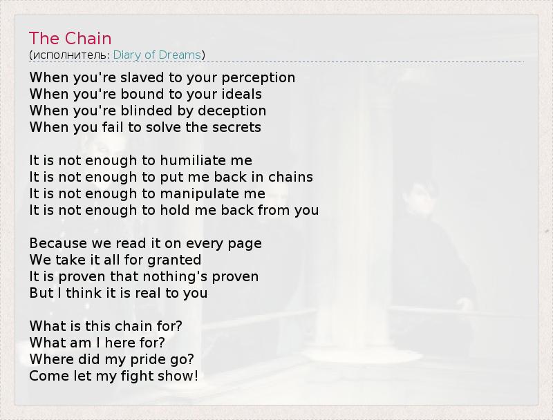 Этого недостаточно, чтобы толкнуть меня обратно в цепи,