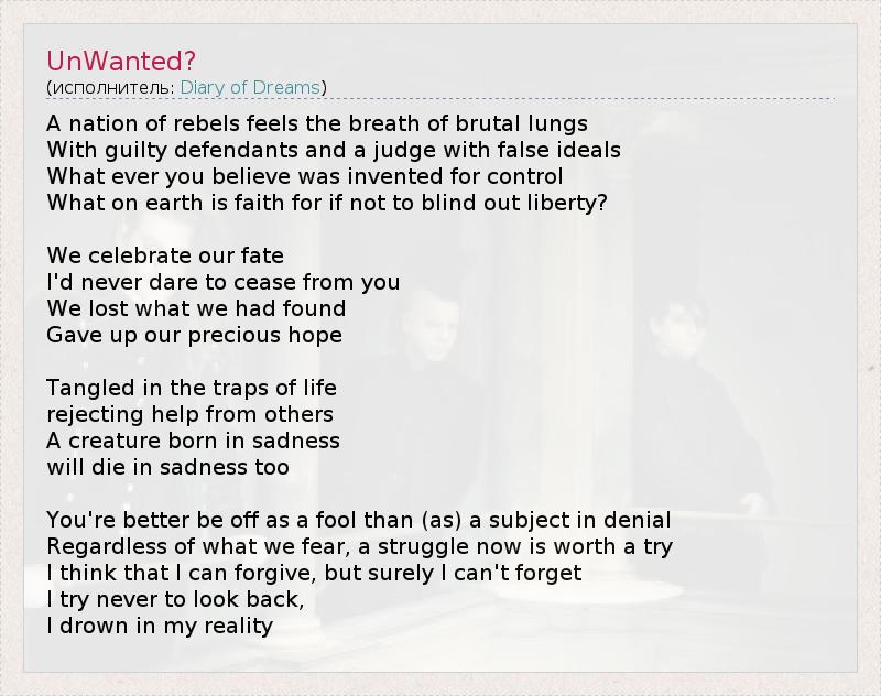 А как ты думаешь, о чем песня "UnWanted?" ?