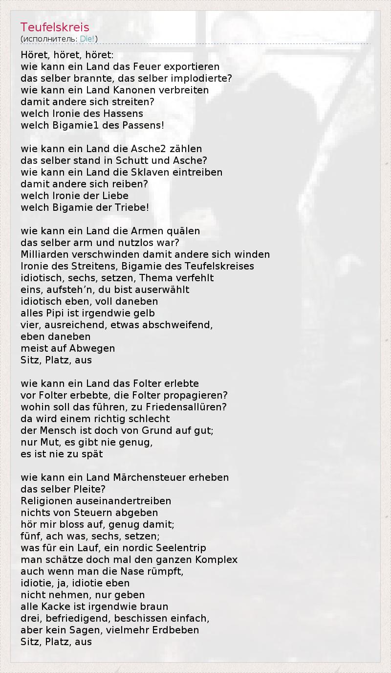А как ты думаешь, о чем песня "Teufelskreis" ?