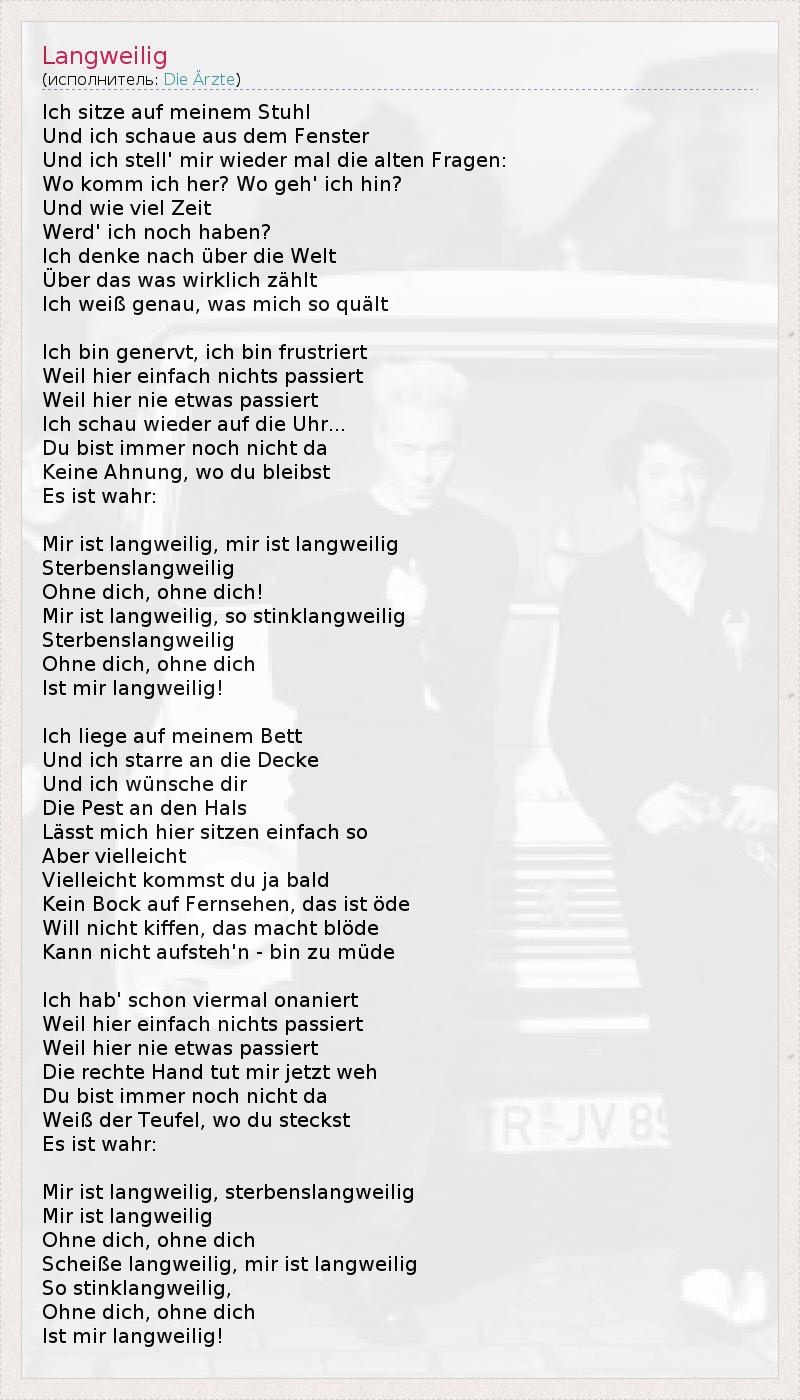 Это интересно:Вот уже практически 20 лет, как 'Врачи' являются одними из лидеров немецкого панка. Причём, популярными они стали сразу после своего первого альбома, подкупив народ своей откровенностью, безбашенностью и оригинальностью. Основатели группы - уроженцы Берлина Jan Vetter (Farin Urlaub) и Dirk Felsenheimer (Bela B.). Farin родился 27 октября 1963 года в Западном Берлине, где и провёл всё своё детство и ходил в... продолжение