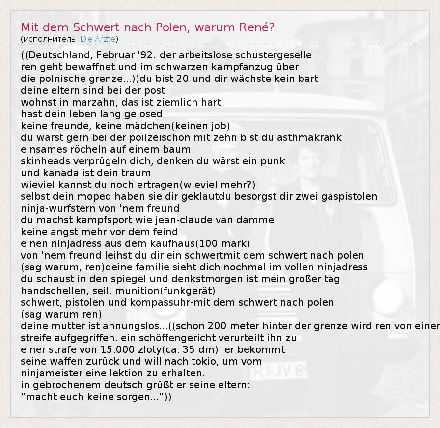 ГлавнаяИсполнителиDie ÄrzteMit dem Schwert nach Polen, warum René?