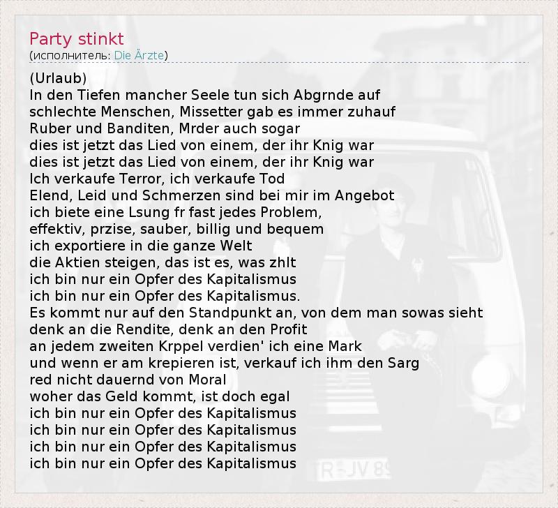 А как ты думаешь, о чем песня "Party stinkt" ?