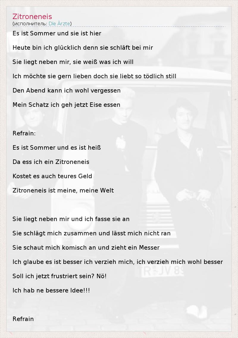 А как ты думаешь, о чем песня "Zitroneneis" ?