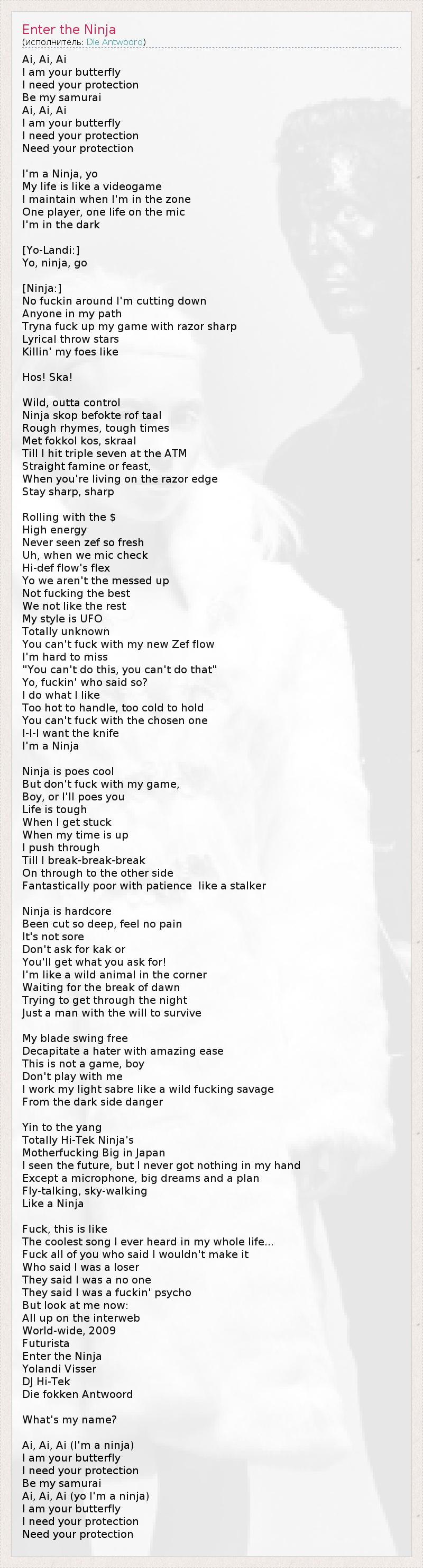 А как ты думаешь, о чем песня "Enter the Ninja" ?