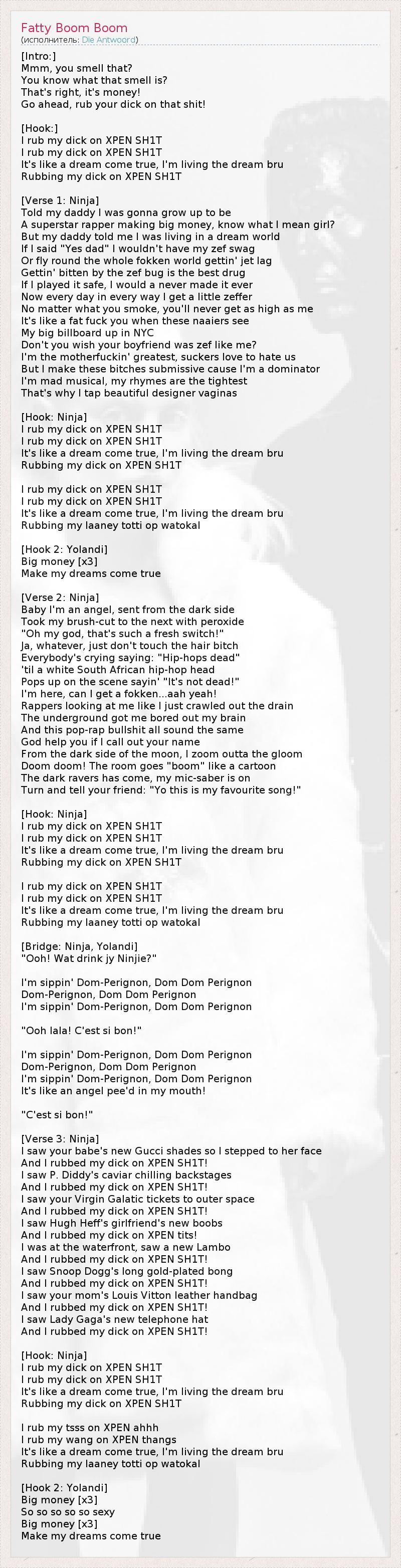А как ты думаешь, о чем песня "Fatty Boom Boom" ?