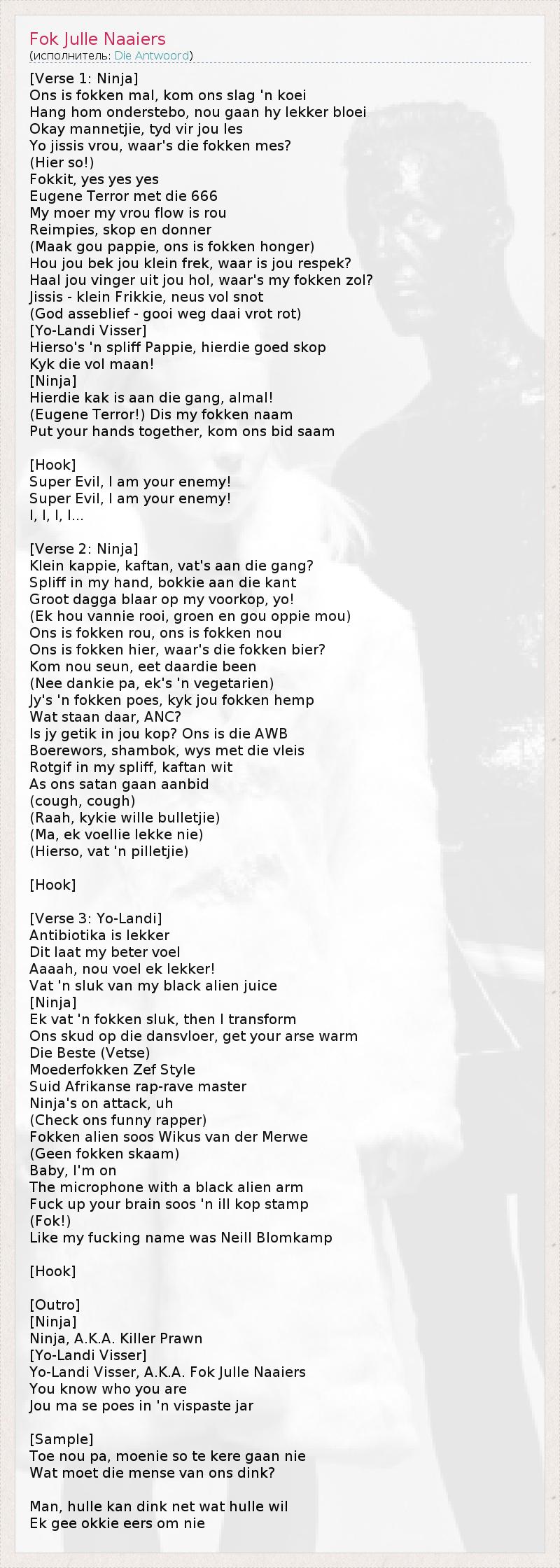 А как ты думаешь, о чем песня "Fok Julle Naaiers" ?