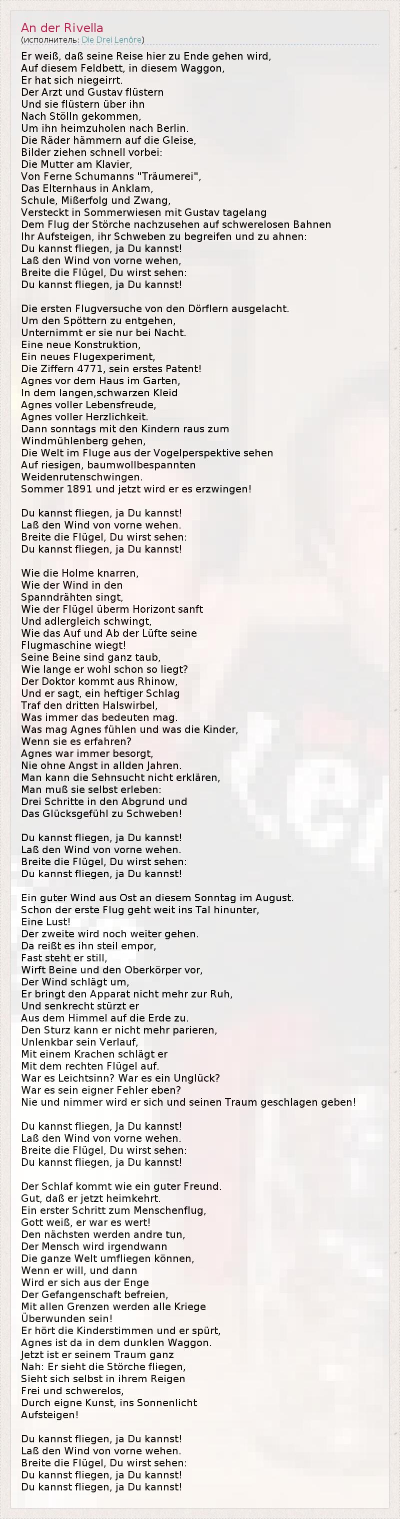 А как ты думаешь, о чем песня "An der Rivella" ?