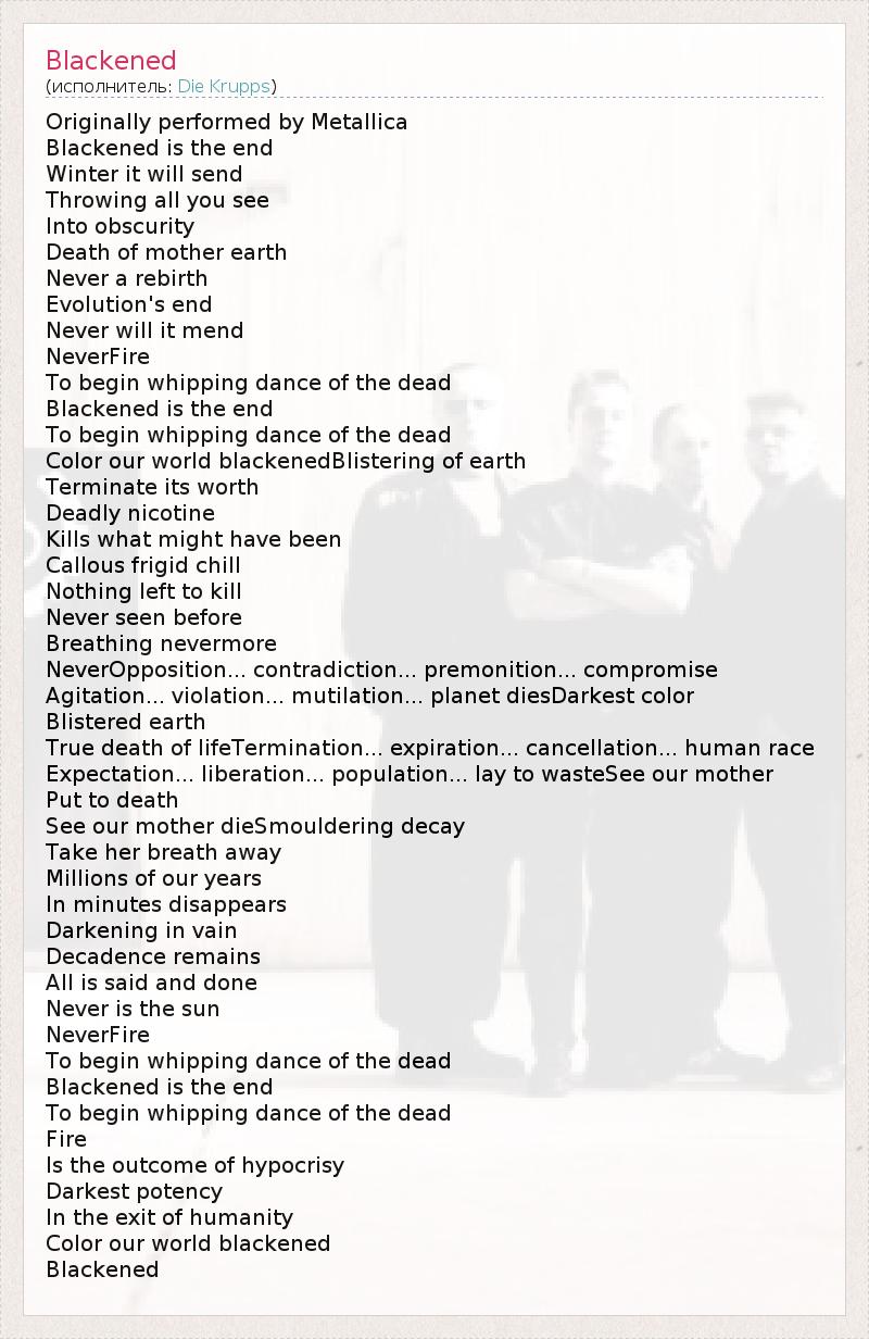 А как ты думаешь, о чем песня "Blackened" ?