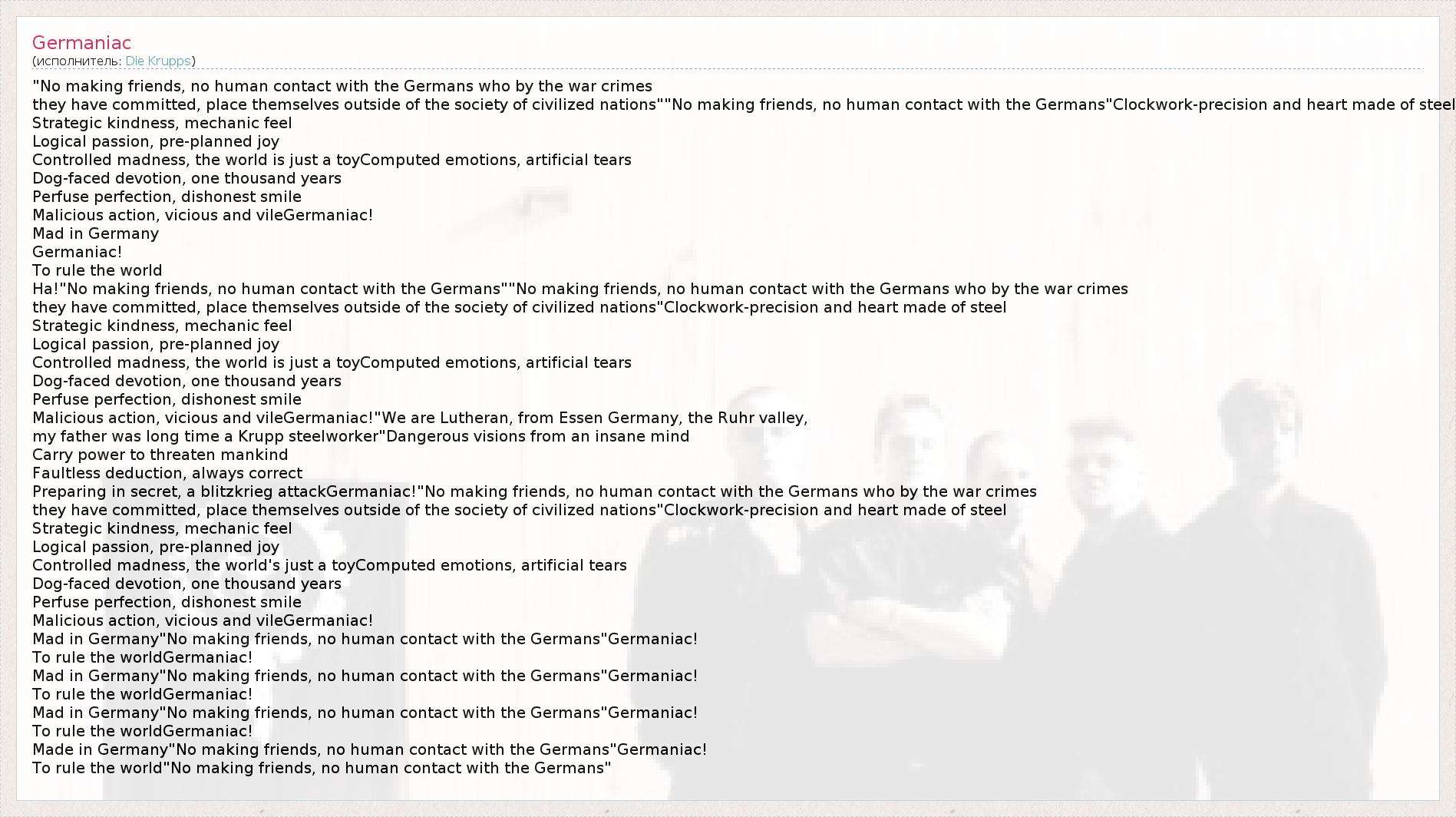 Made in Germany"No making friends, no human contact with the Germans"Germaniac!