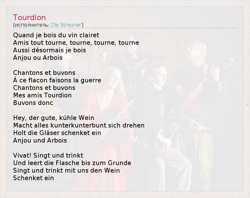 Это интересно:Год основания: 1994Жанр: Musik der MittelalterszeneОфициальный сайт: http://www.streuner.de/MySpace: http://www.myspace.com/diestreunerСостав: "Pinto der Schäfer", он же Carsten Hickstein (лютня, шалюмо, вокал), "Rabe", она же Miriam Petzold (скрипка, бубен, вокал), "Don Martino (Martin)", он же Martin Seifert (испанская лютня, вокал), "Matty der Angelsachse", он же Mathew Rouse (скрипка, перкуссия,... продолжение