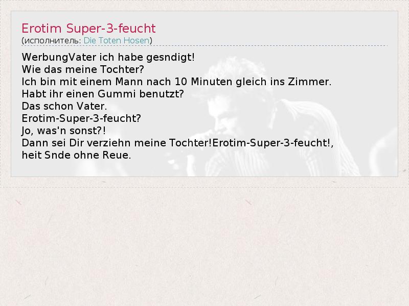 А как ты думаешь, о чем песня "Erotim Super-3-feucht" ?