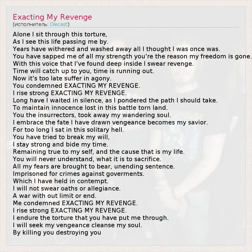 А как ты думаешь, о чем песня "Exacting My Revenge" ?