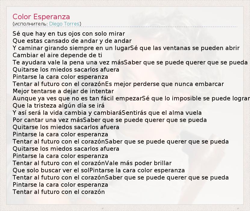 А как ты думаешь, о чем песня "Color Esperanza" ?