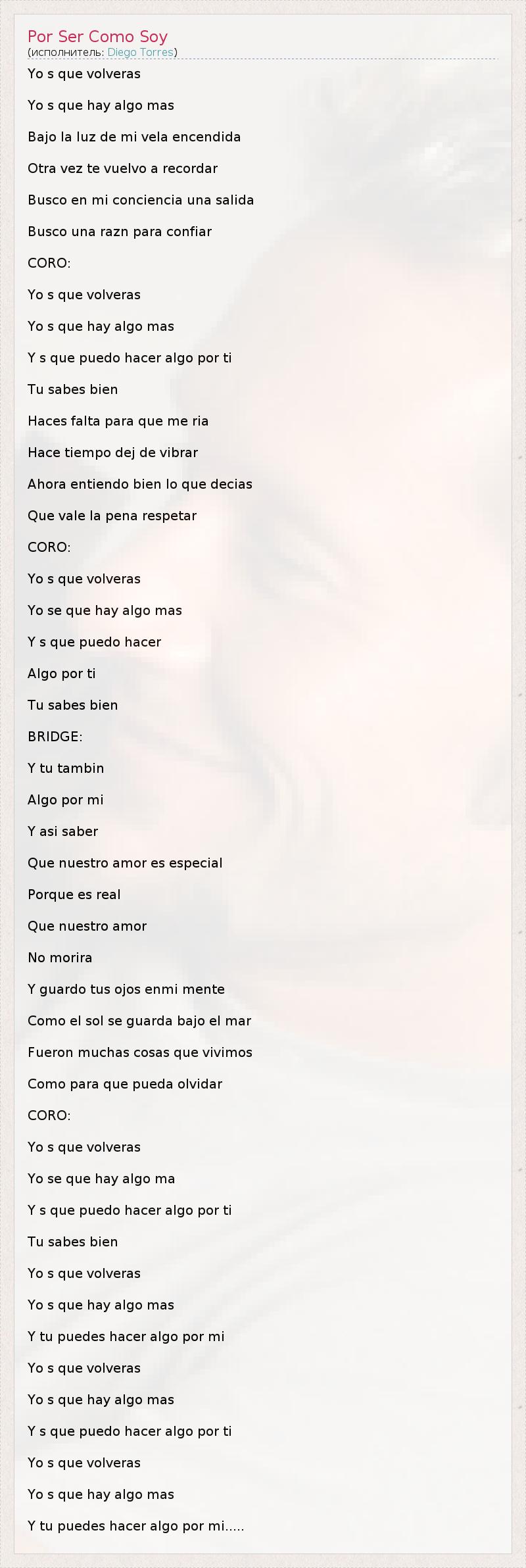 А как ты думаешь, о чем песня "Por Ser Como Soy" ?