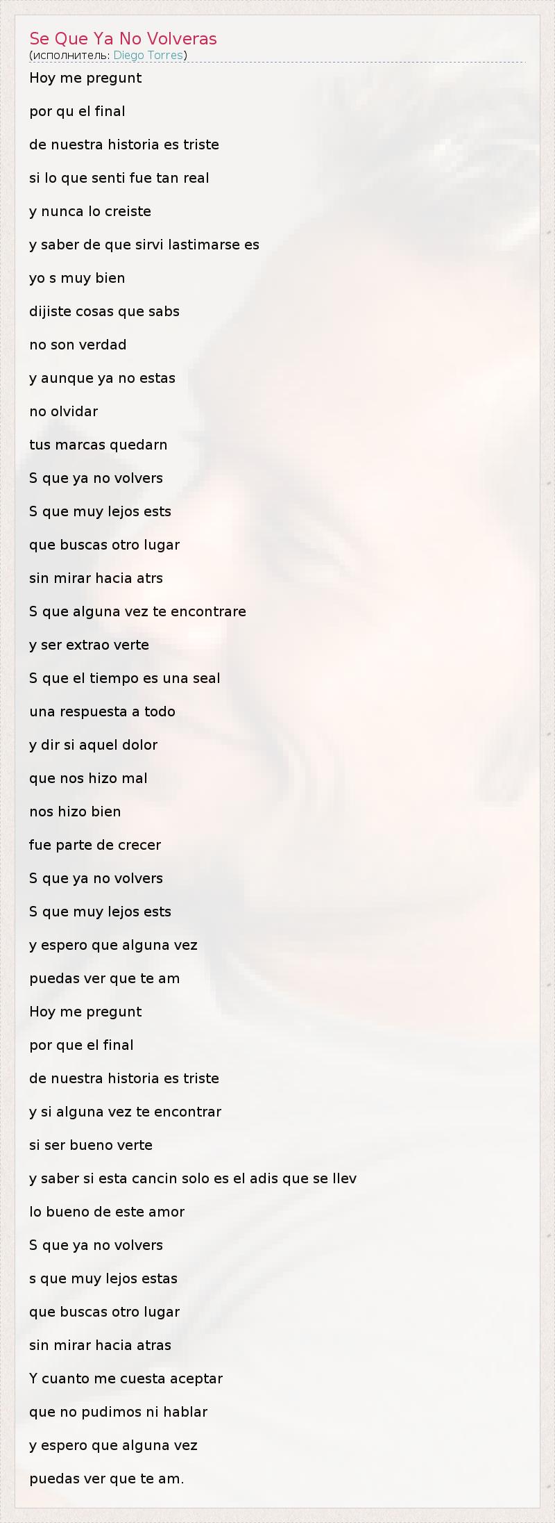 А как ты думаешь, о чем песня "Se Que Ya No Volveras" ?