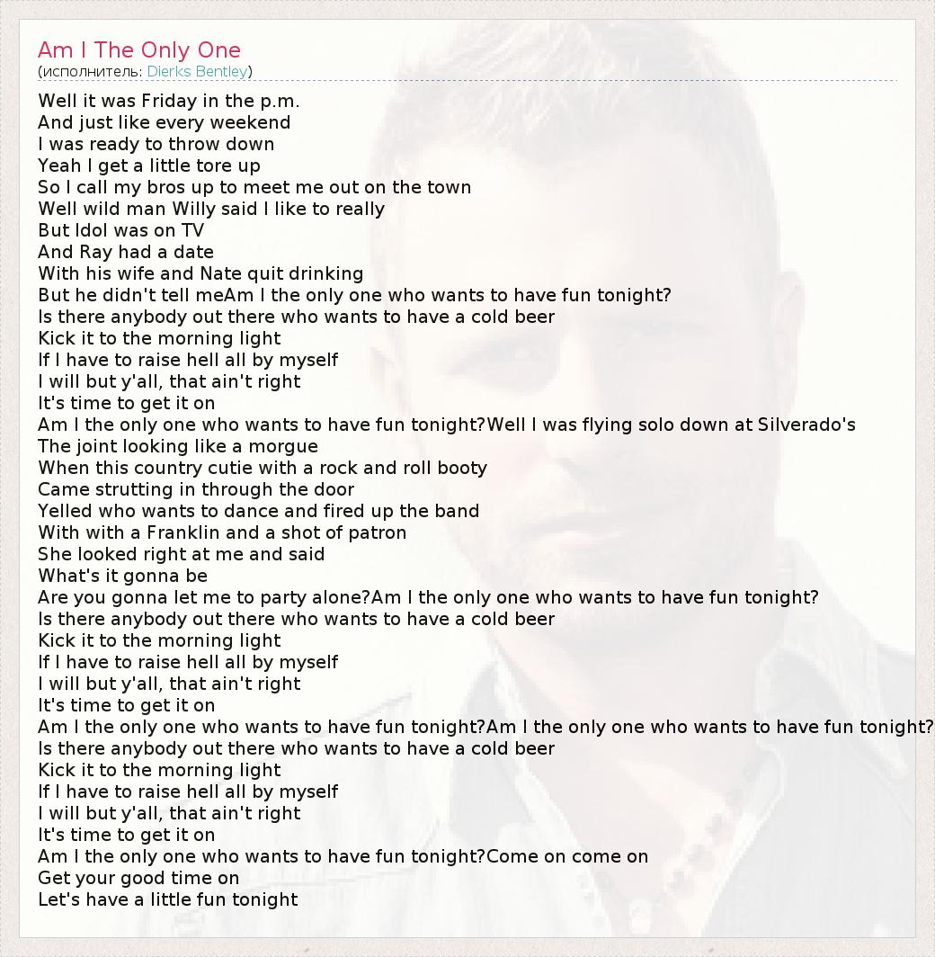 Are you gonna let me to party alone?Am I the only one who wants to have fun tonight?