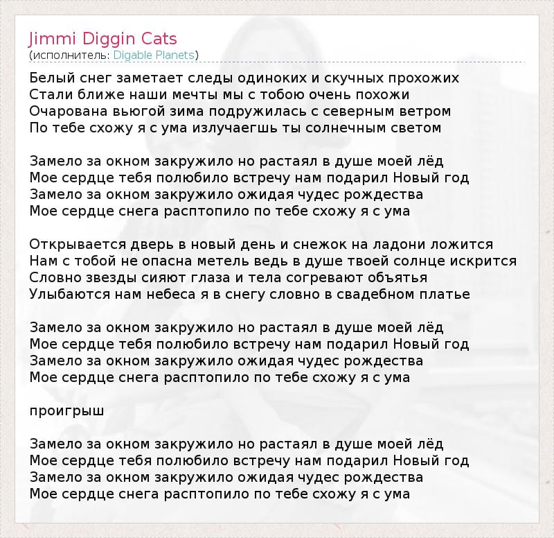 А как ты думаешь, о чем песня "Jimmi Diggin Cats" ?