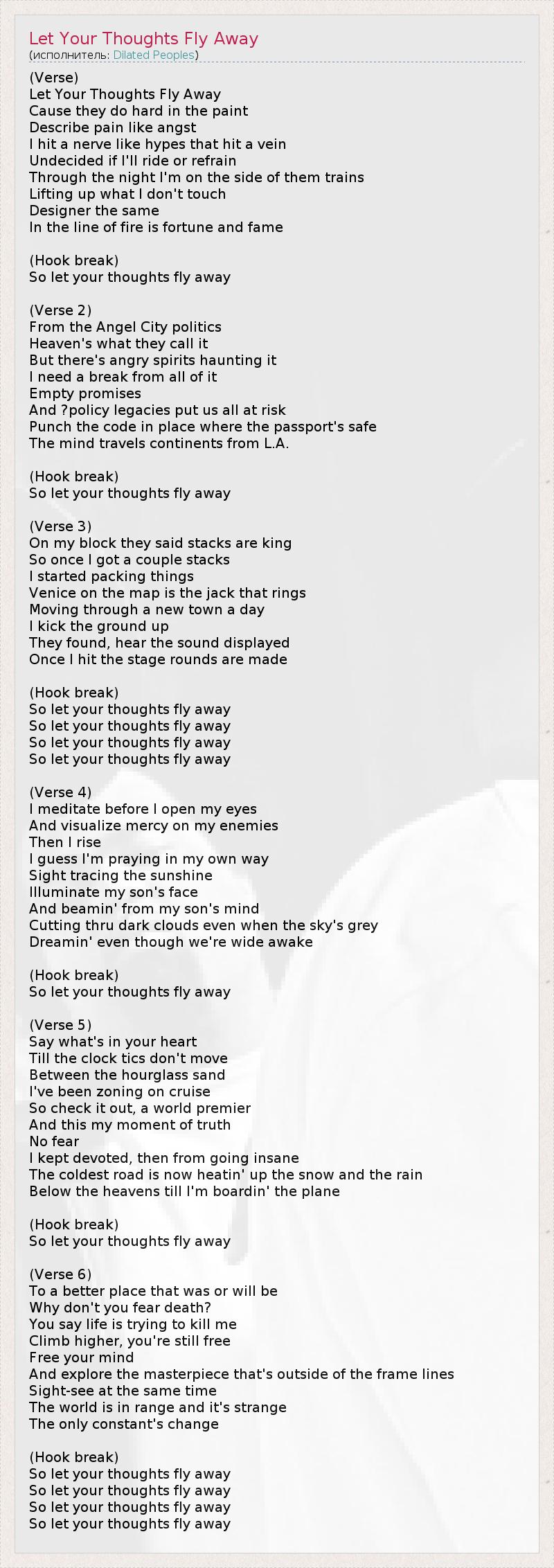 А как ты думаешь, о чем песня "Let Your Thoughts Fly Away" ?
