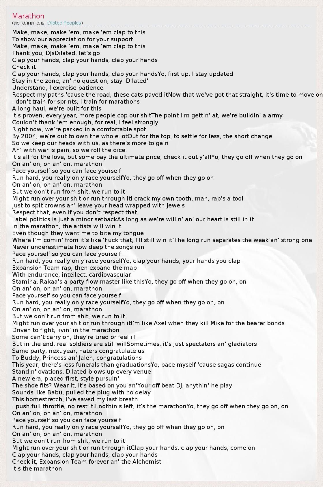 А как ты думаешь, о чем песня "Marathon" ?